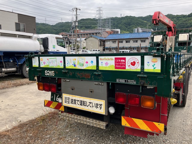 2025年5月24日 弊社従業員の子ども達の書いた絵をラッピングしたトラックが完成し、お披露目会を実施しました。